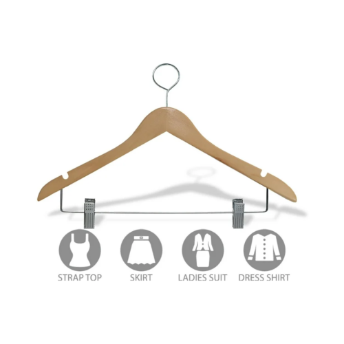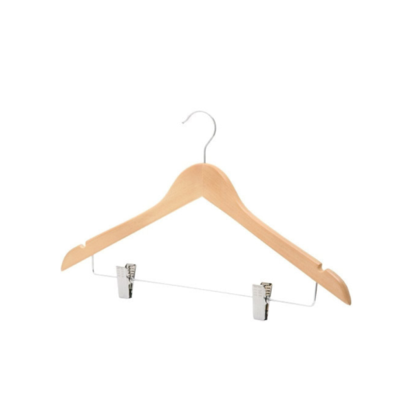 Standard hangers available in wooden and stainless steel finishes. Suitable for everyday use in hotel wardrobes.