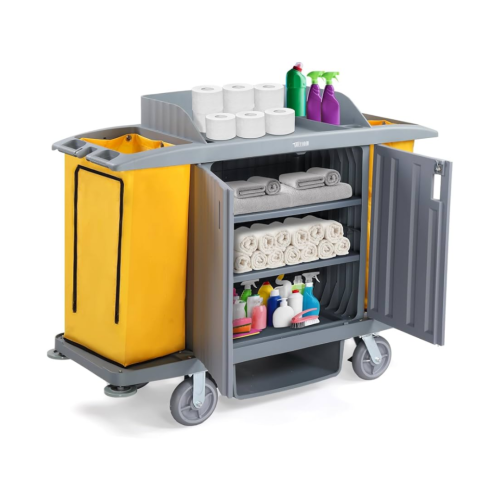 Spacious clean linen trolley measuring 120x145x80 cm, designed for transporting fresh laundry. Durable construction ensures hygiene and efficiency in hospitality and healthcare facilities.