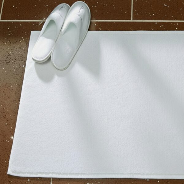 This plush white bath mat by Maliktek offers excellent absorbency and softness underfoot. Sized at 50 x 80 cm, it provides ample coverage and a clean, classic look for hospitality bathrooms.