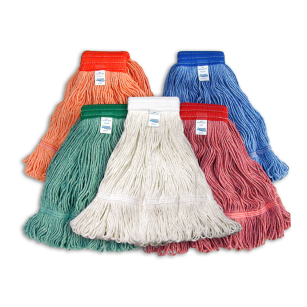 Color-coded mop heads designed for hygienic cleaning practices. Highly absorbent and durable for repeated use.