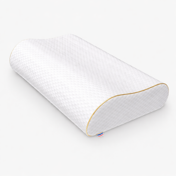 Ergonomic memory pillow measuring 60x40x13–11 cm, designed to provide optimal neck support and pressure relief.